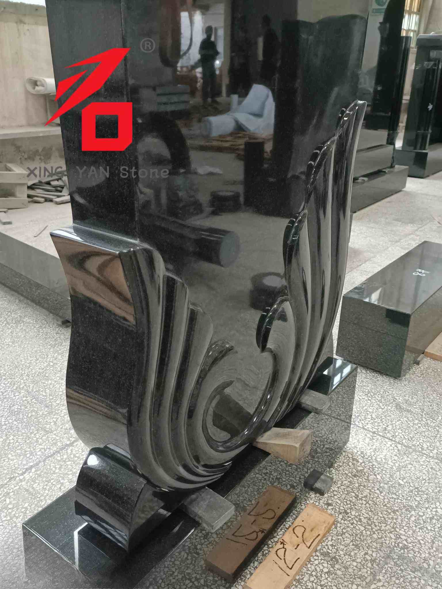Изработка: Користејќи комбинација од техники за резбање со ЦПУ и рачно полирање, уметничката форма на надгробната плоча и шаблонот со свитоци во основата се прецизно извајани, што резултира со мазни, природни линии и покажувајќи исклучителна изработка во секој детал.