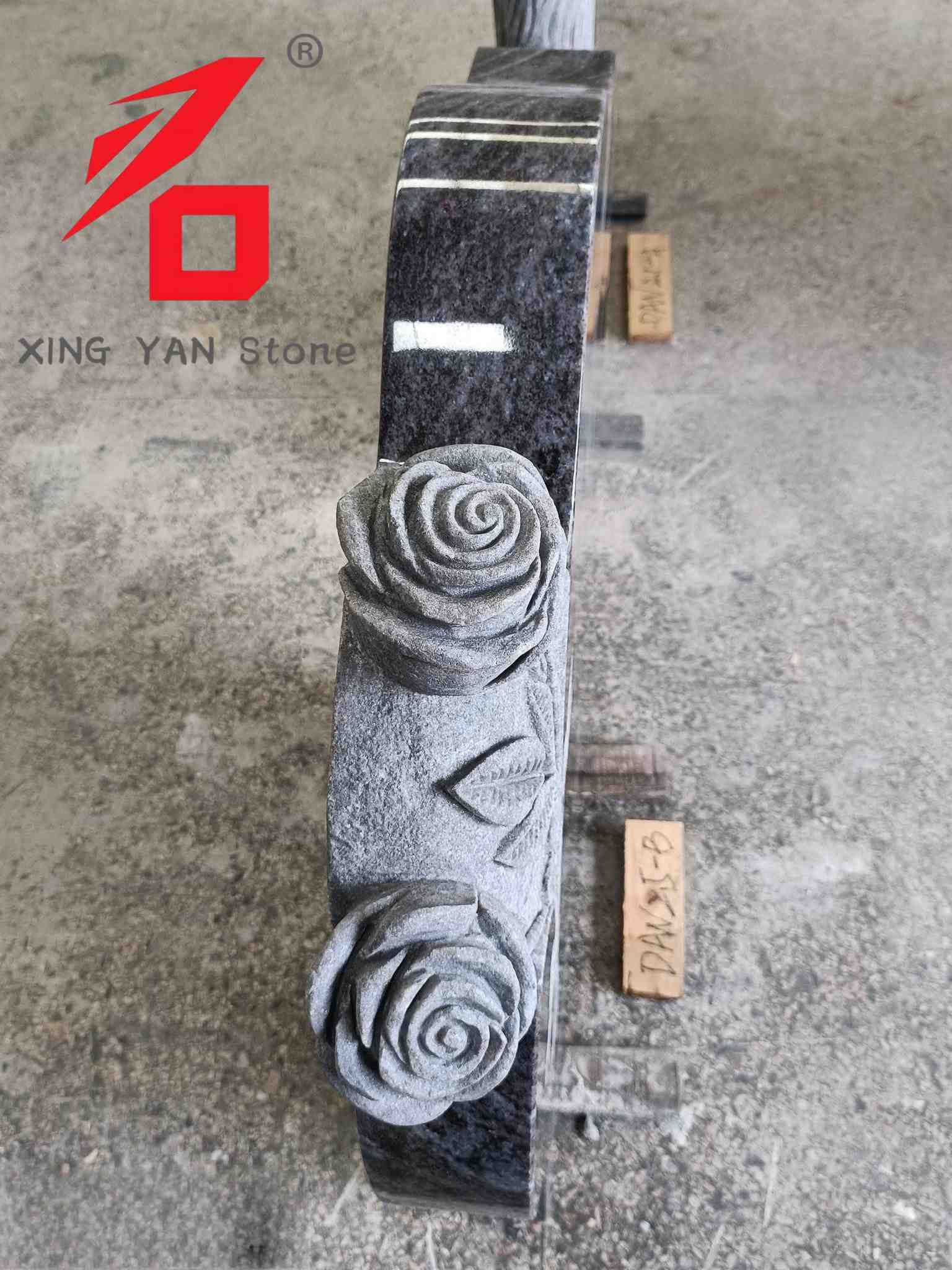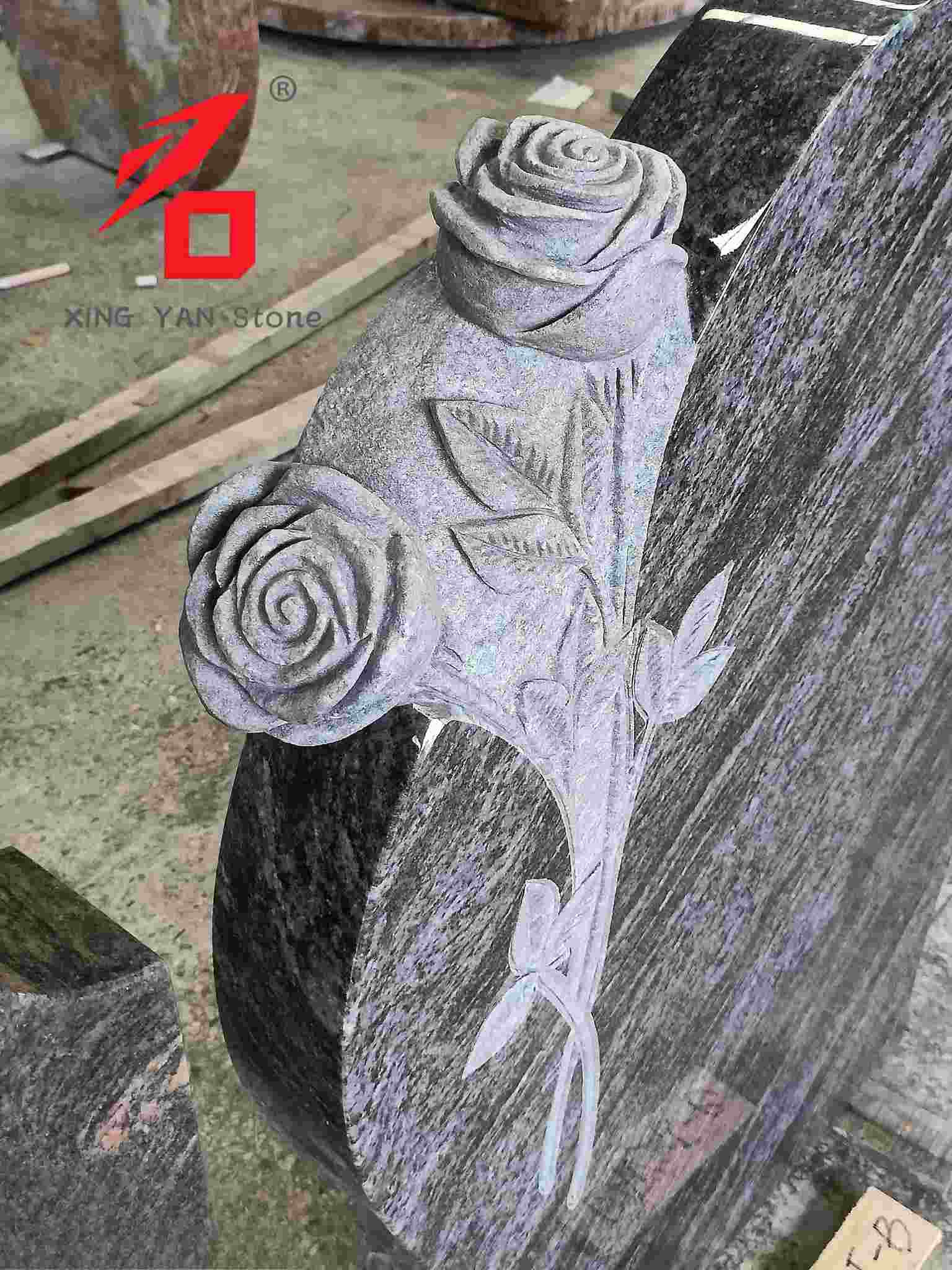 Изработка: Главното тело е резба од камен во облик на срце, поврзана со тридимензионална релјефна роза (ливчиња и листови со јасни детали). Декорацијата и надгробната плоча се интегрирани, што резултира со значително чувство и стабилна структура;