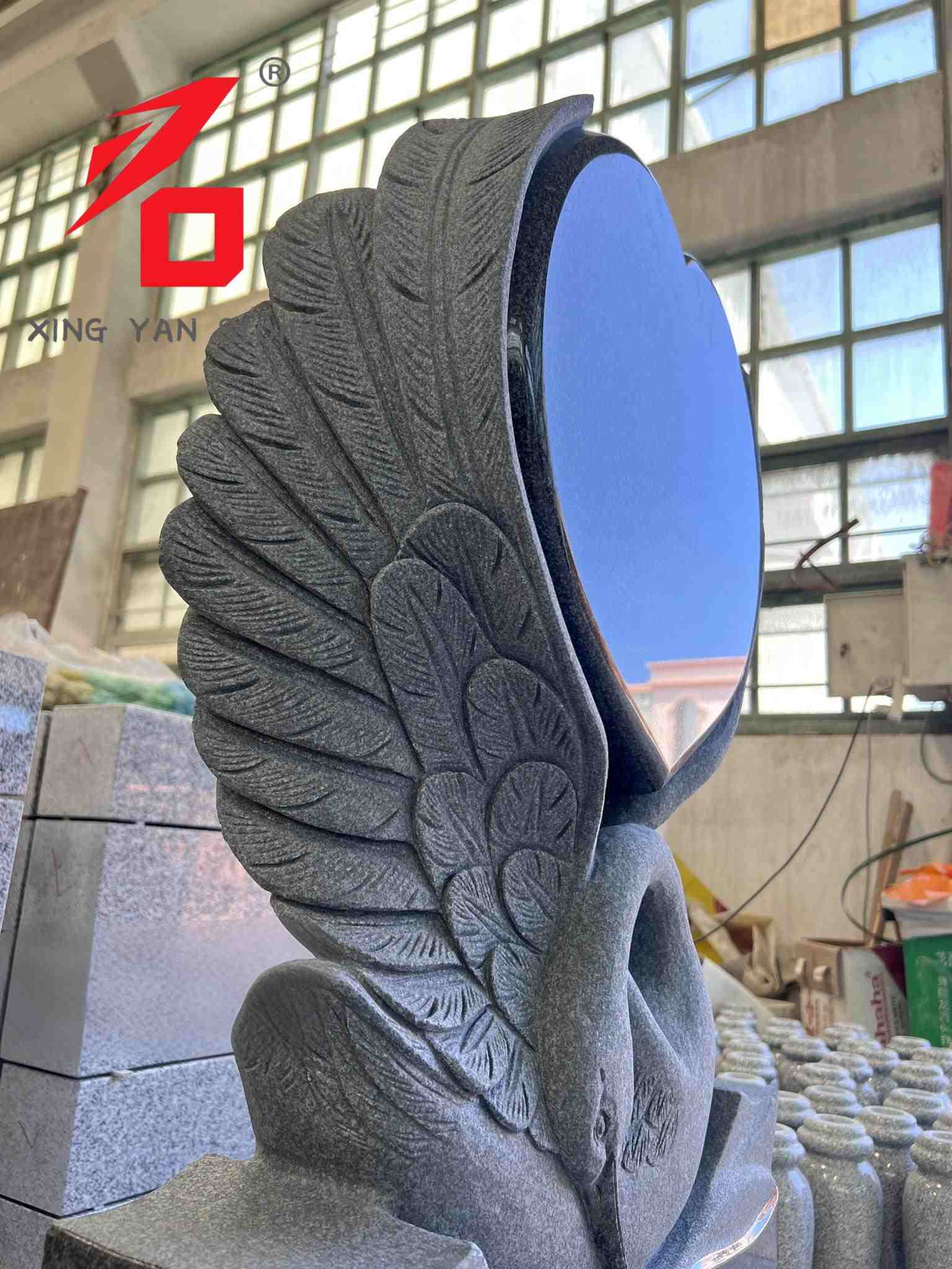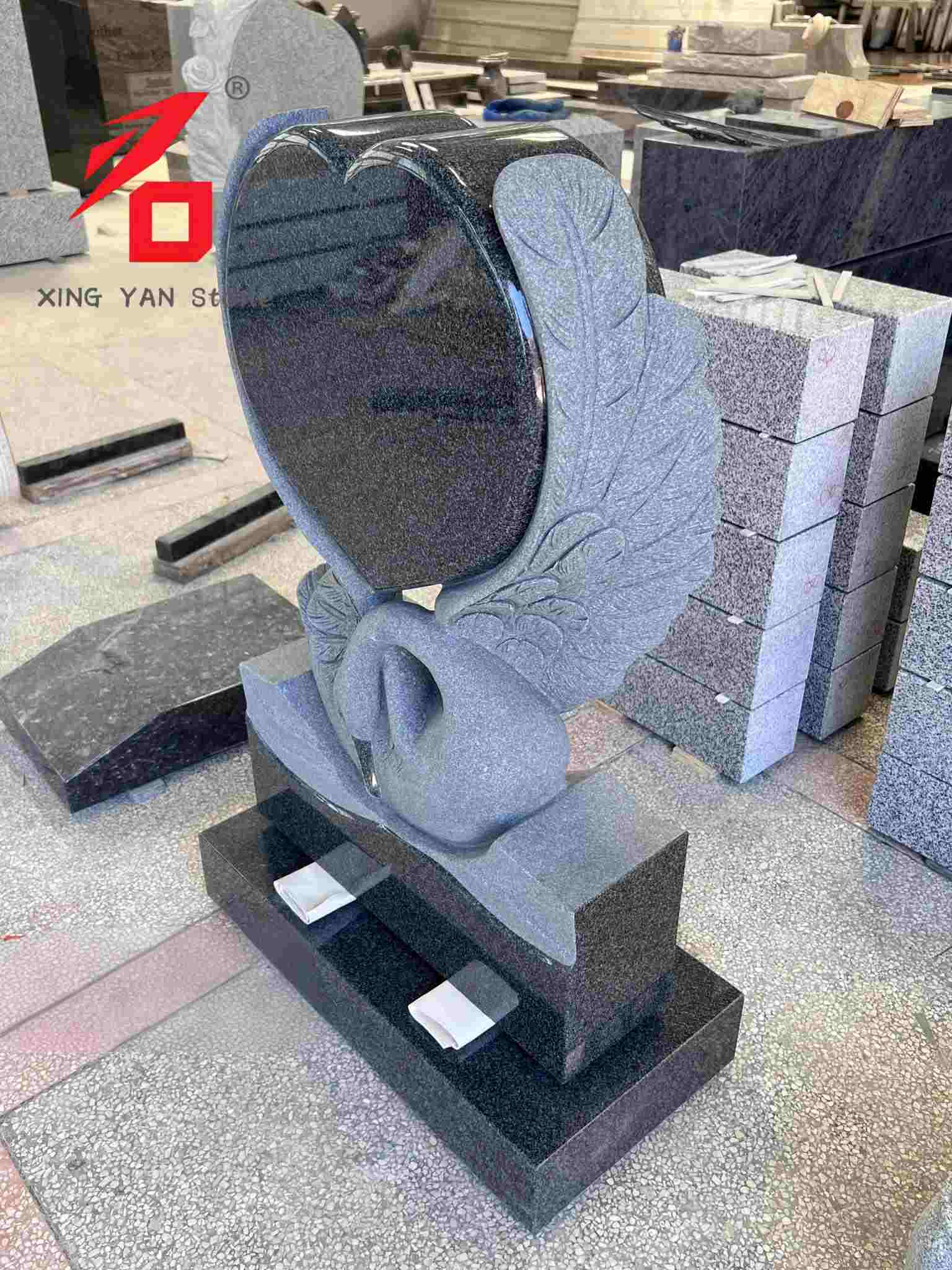 Дизајн: Главното тело е полирано црно срце, со живописни лебедови крилја издлабени зад него. Обликот на лебед и срцето симболизираат вечна љубов и сеќавање за покојникот. Целокупниот дизајн е високо уметнички, што го разликува од монотониот стил на традиционалните надгробни споменици.