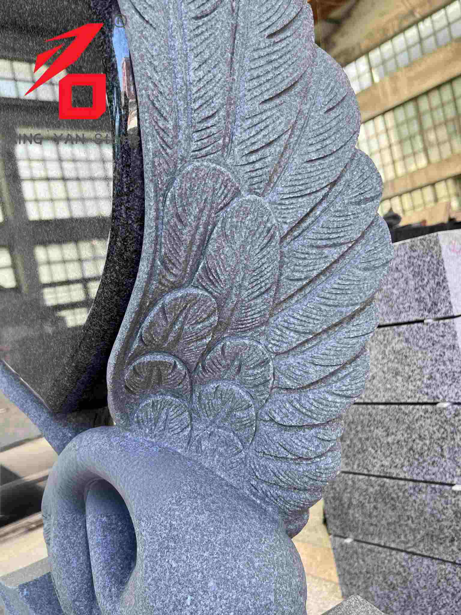Син бисер гранит надгробен споменик на ангел во облик на срце