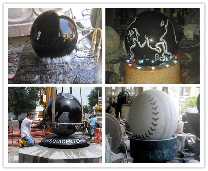 Камен врежани топки Фенг Шуи се украси на Фенг Шуи кои се користат во современи згради за недвижнини, луксузни домови, дворови, вили, квадрати, трговски центри, места за забава и други архитектонски поставки. Тие симболизираат добра фенг шуи, добра финансиска среќа и мазна кариера. Камените врежани топки Фенг Шуи се како природни карпи што ја збогатуваат виталноста на животот, придружени со неуморна вода што тече, додавајќи виталност на целокупната околина во дворот.