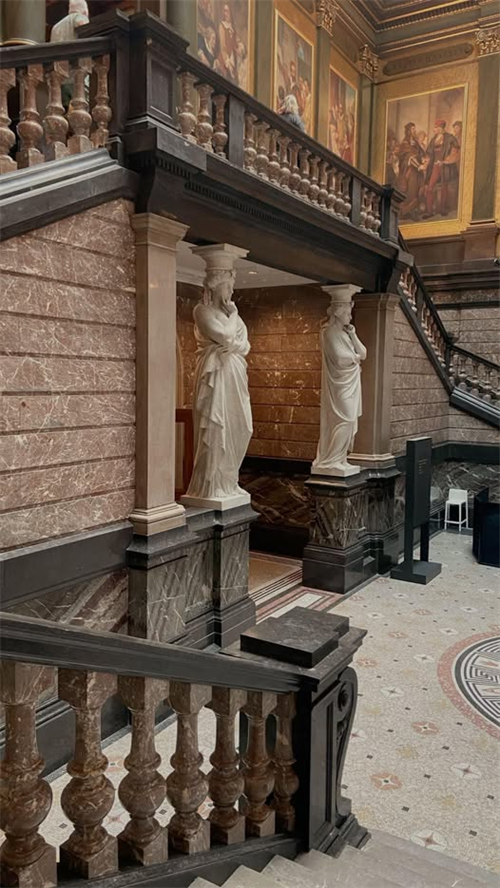 * Целокупниот стил е класичен и луксузен, што укажува на место со богата историја и архитектонско значење.