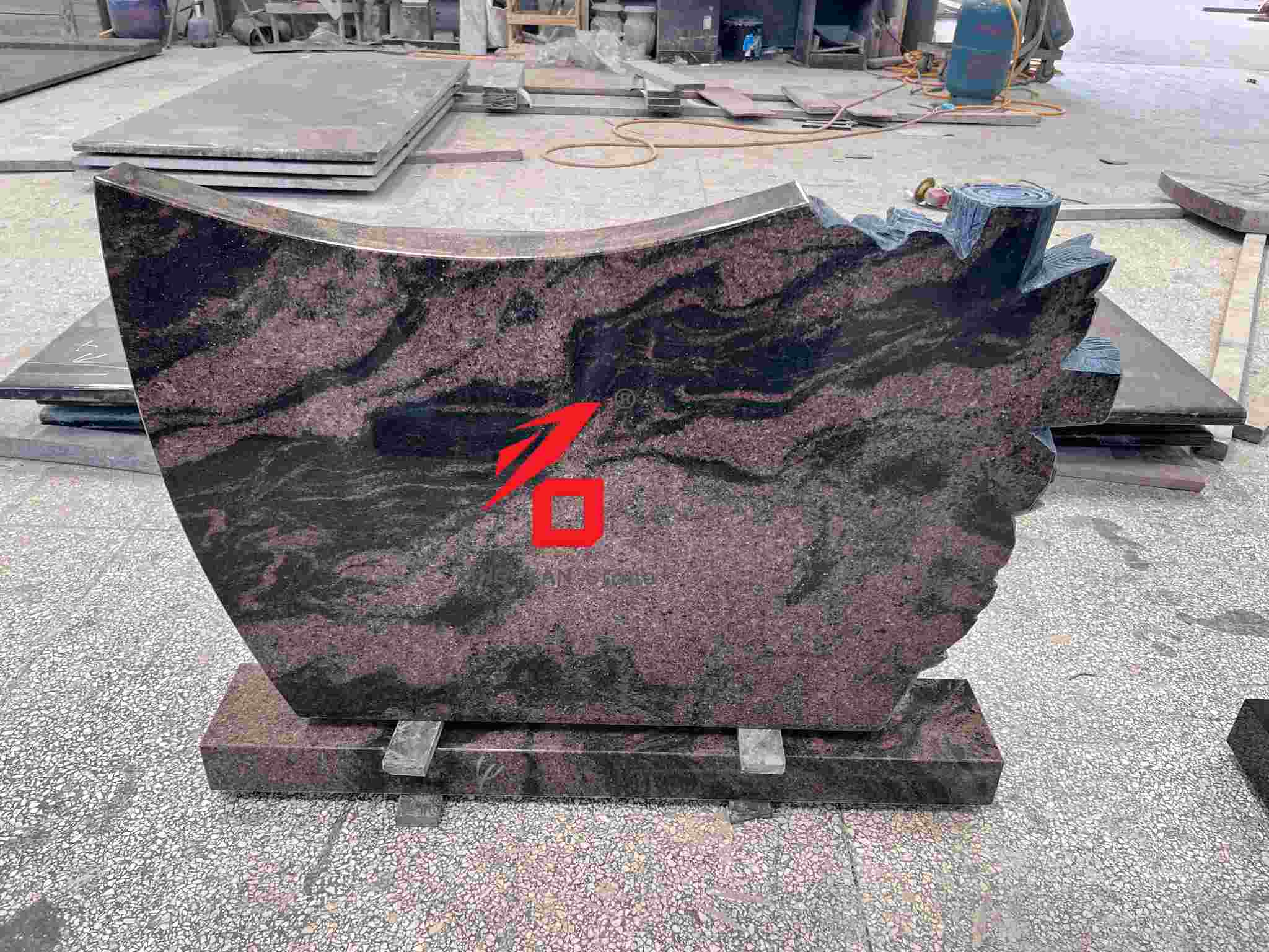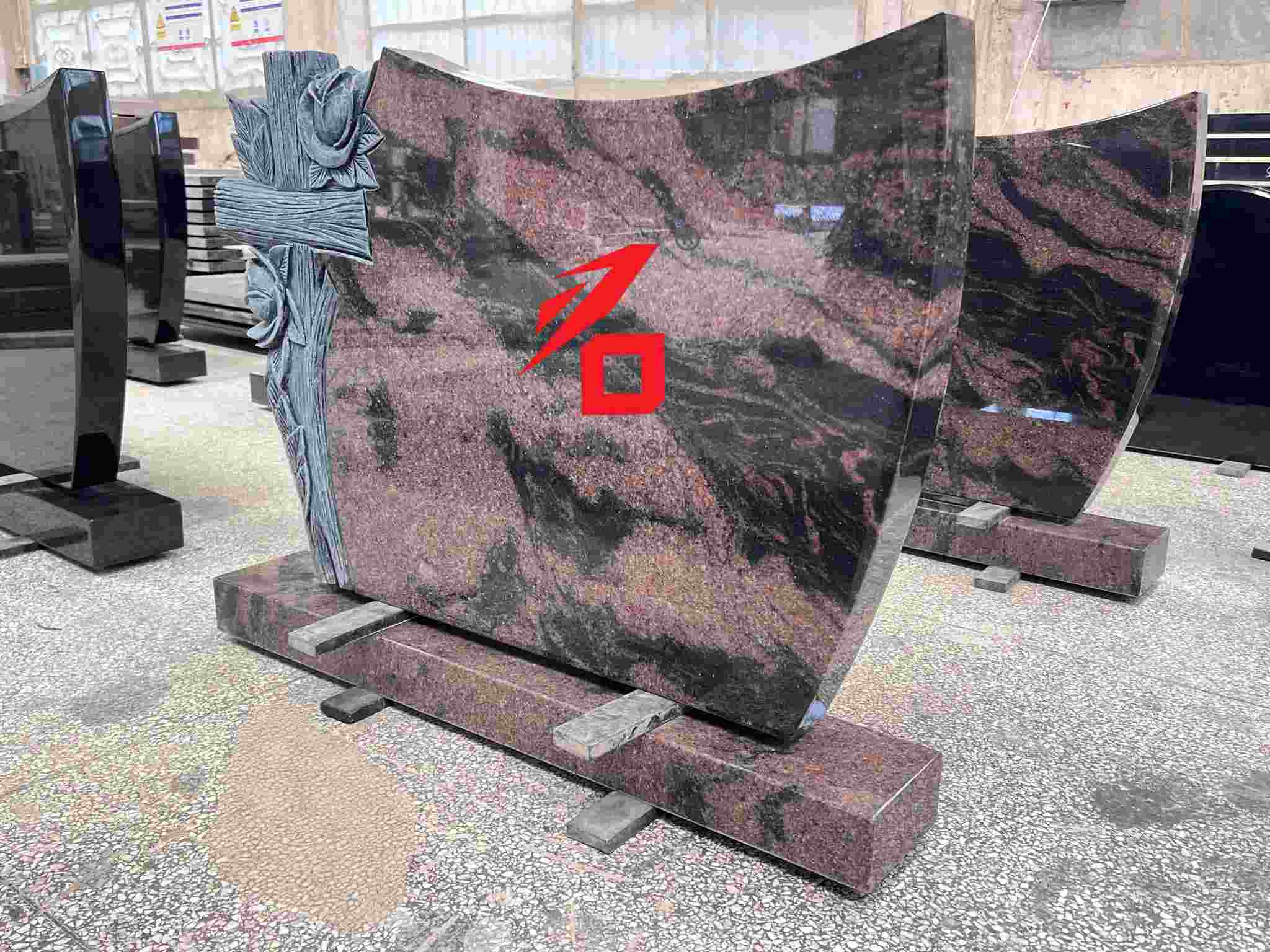 Материјал: Избран пурпурно-црвен шарен гранит (стабилна боја, тврда текстура), полирана површина, комбинирана естетика и отпорност на временските услови, погоден за долгорочно поставување на отворено;