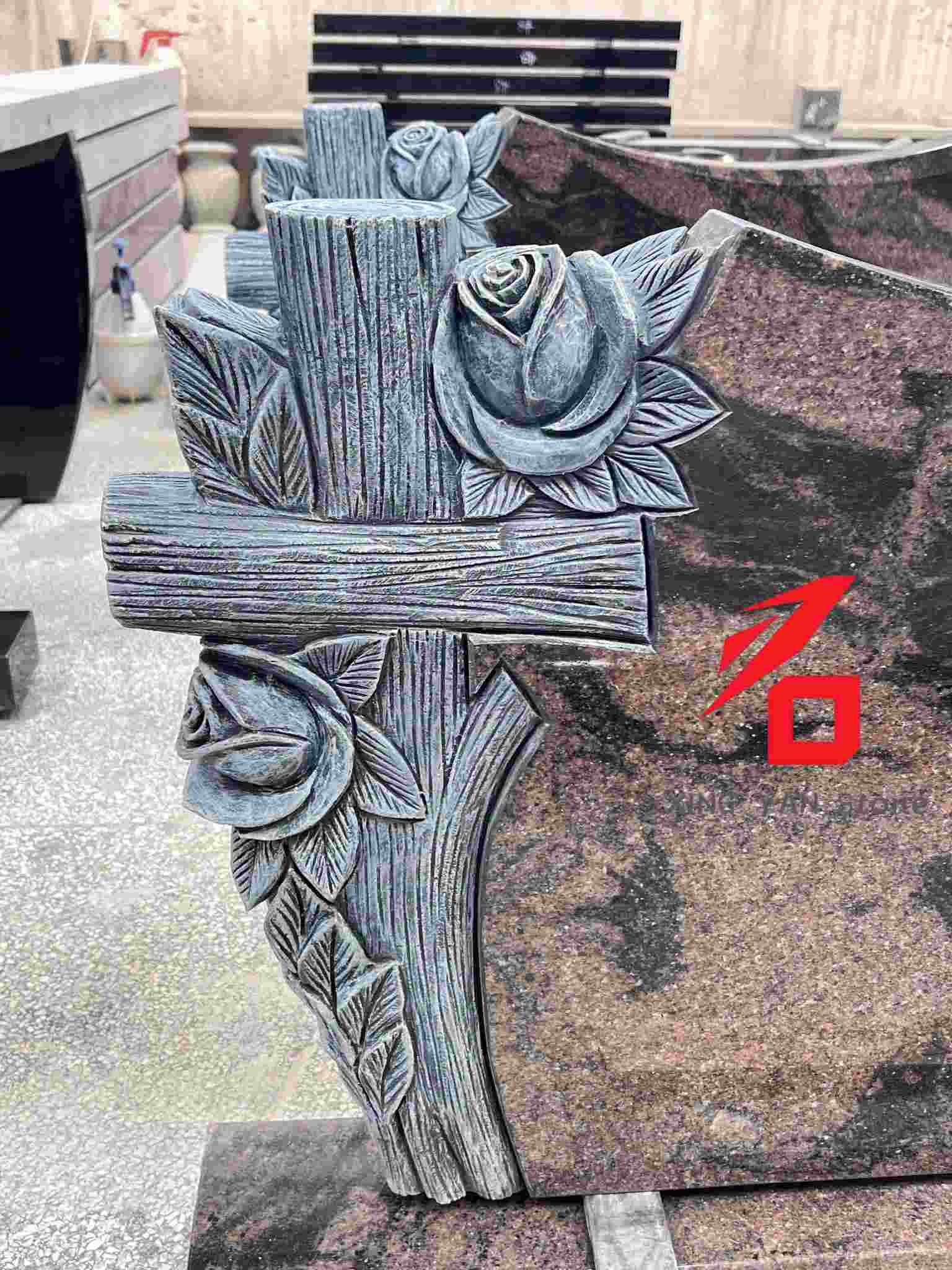 Занаетчиство: Користи техника на 3D релјеф, при што крстот покажува текстура од дрво и шарите на розите и листовите прецизно прикажани. Декорацијата и главниот камен резба се беспрекорно интегрирани, обезбедувајќи структурна стабилност.