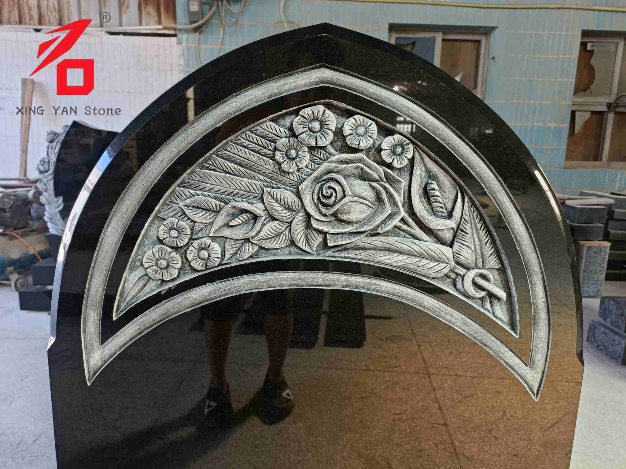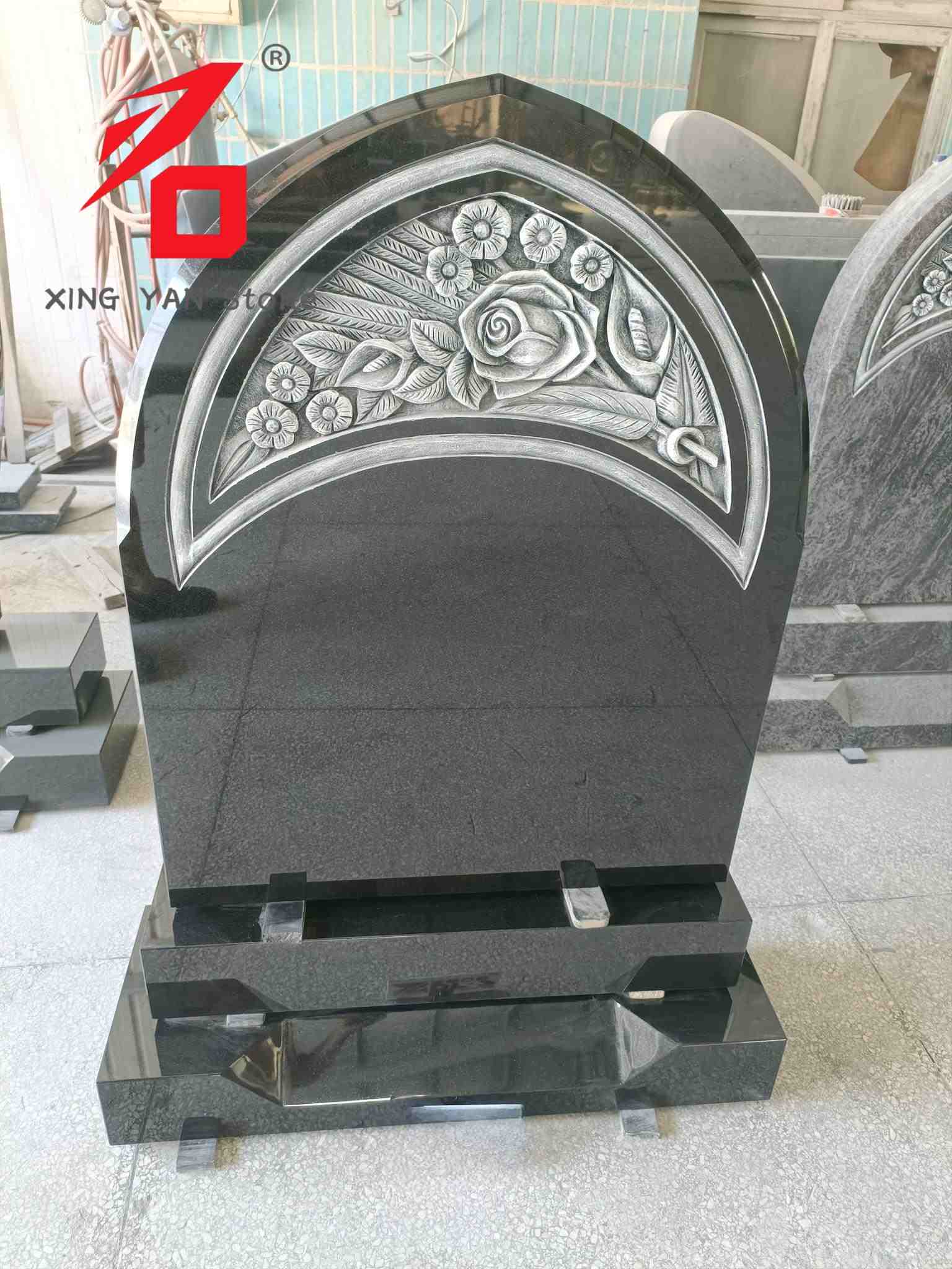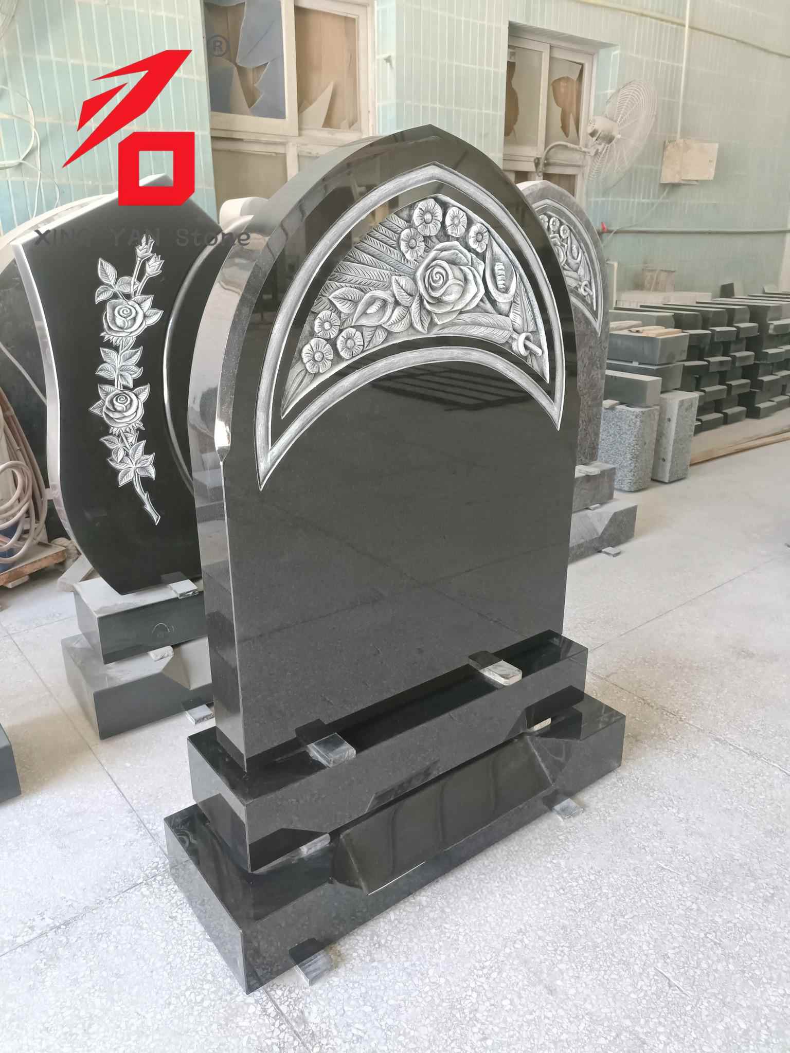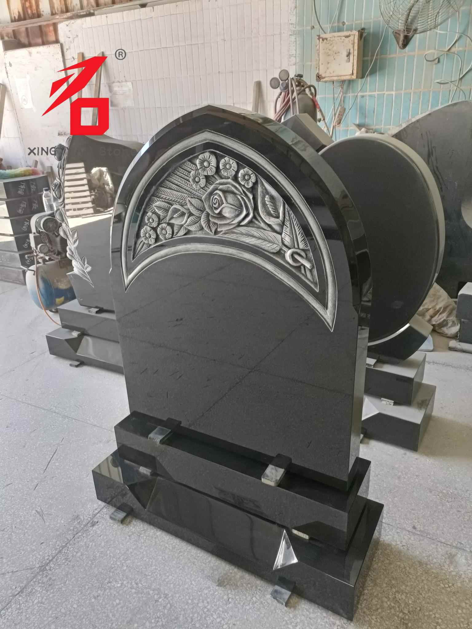Стил на дизајн: Заоблената форма во комбинација со елементи на релјефот од роза пренесува комеморативно значење што комбинира благост и свеченост, погодни за изразување длабоко сеќавање на починатиот.