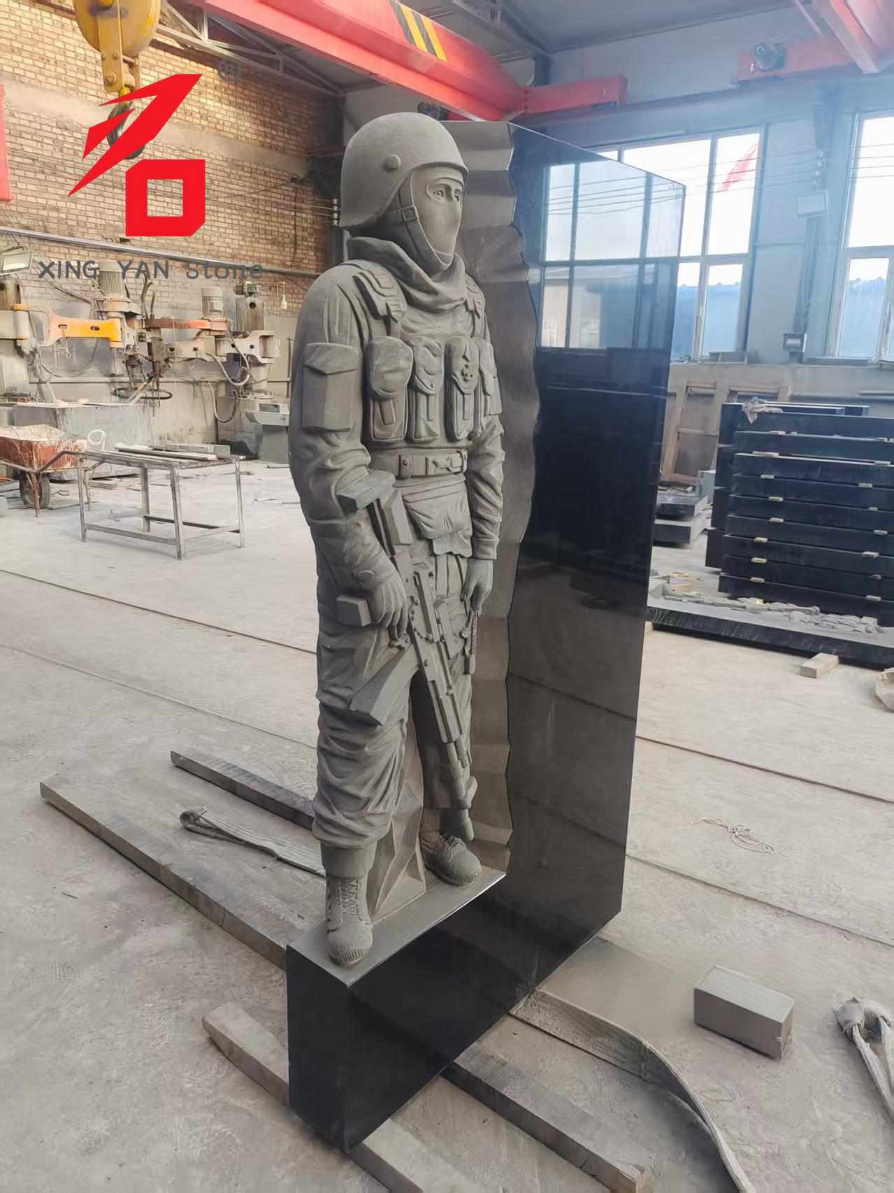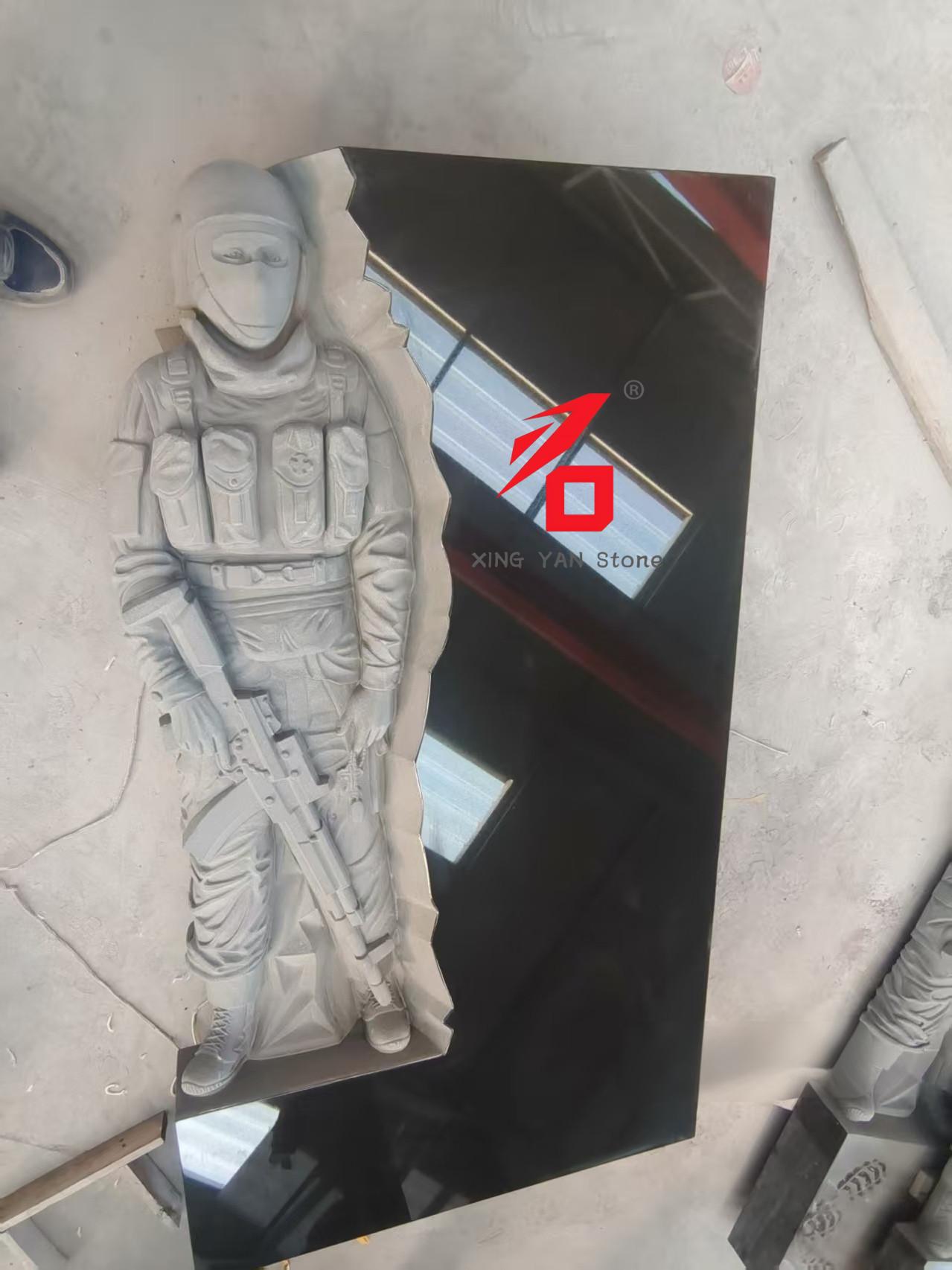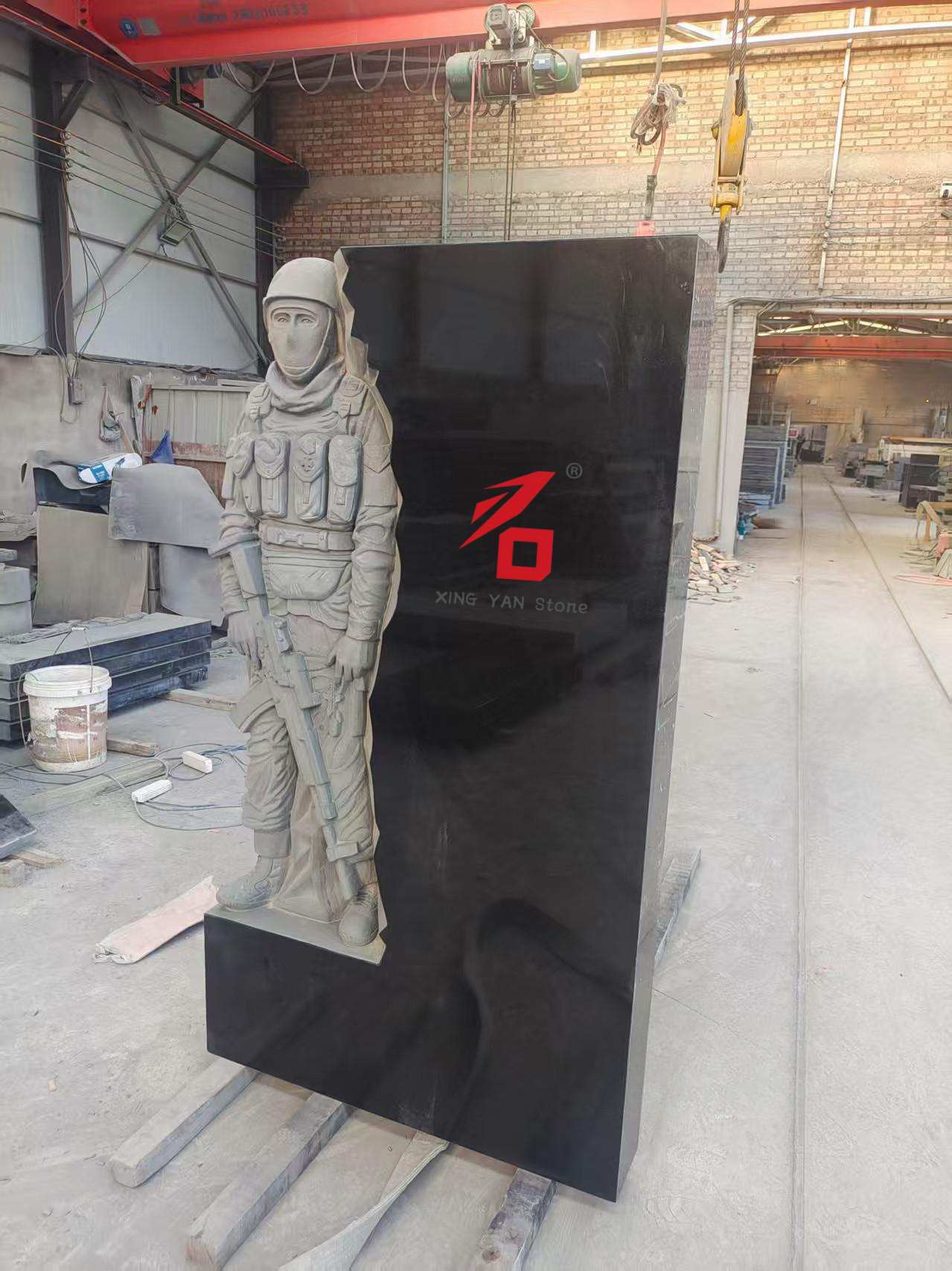 Материјал: Црн гранит со висока цврстина (на пример, индиски црн гранит), фино полиран за мазна, сјајна површина, отпорен на временски услови и отпорен на корозија, погоден за долгорочно прикажување на отворено;