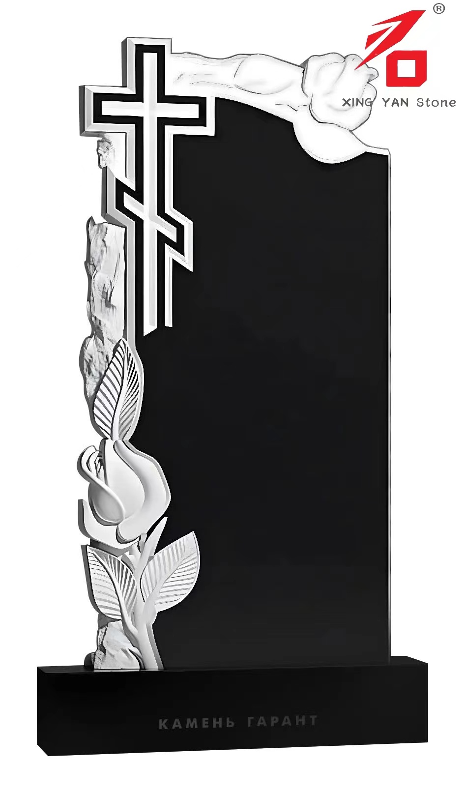 емоционално изразување. Црниот гранит ја симболизира вечноста и длабочината, крстот