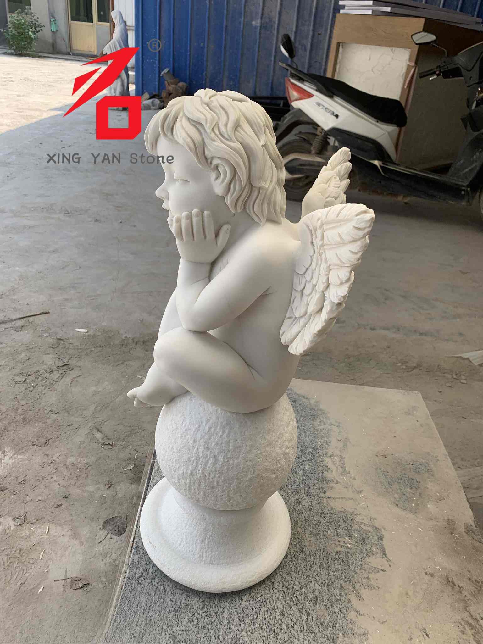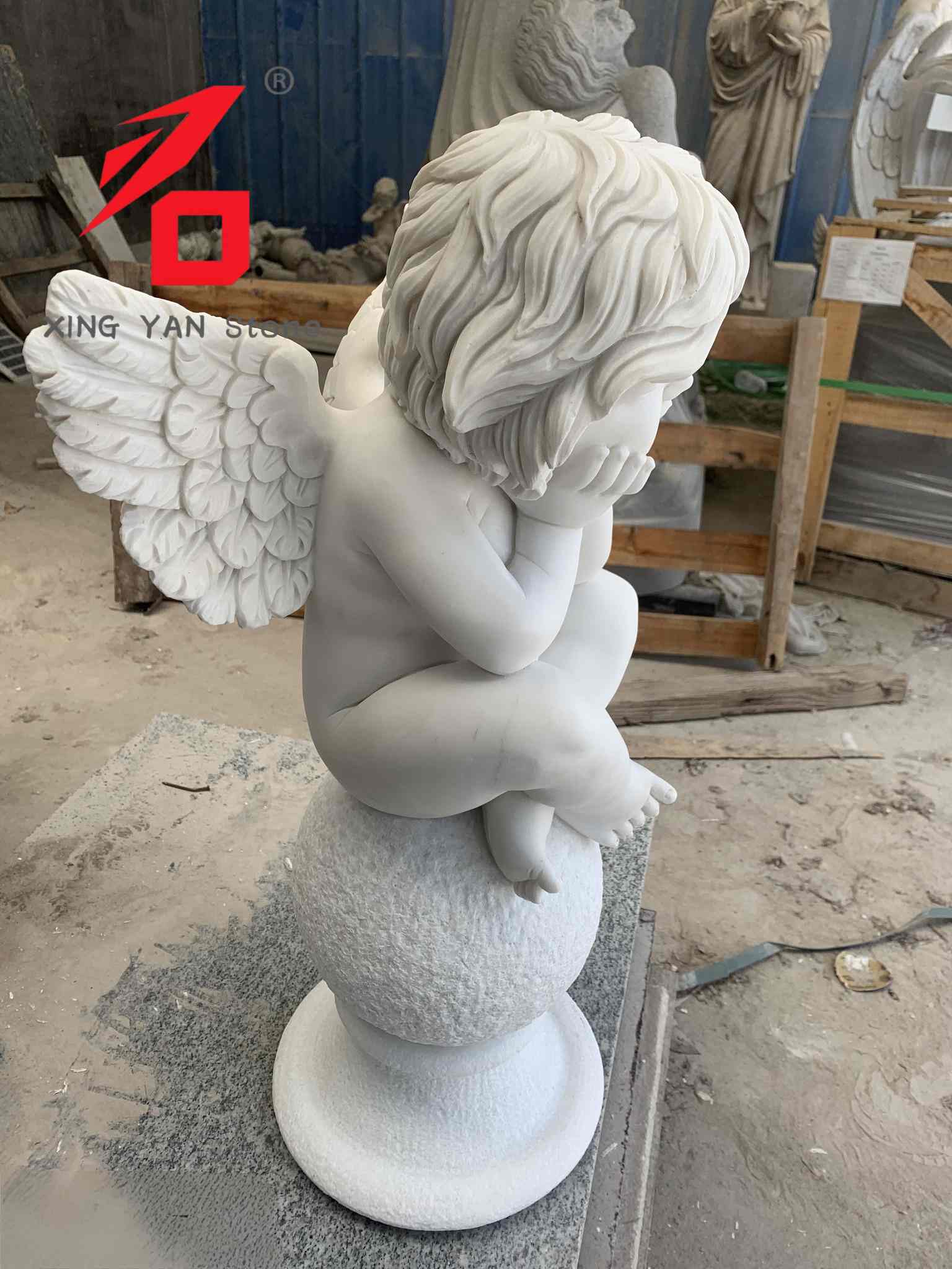 Дизајнерски стил: Усвојувајќи го европскиот класичен стил, херувимот е прикажан во контемплативна поза, со рацете потпрени на брадата, со спокоен израз. Неговите крилја се јасно дефинирани, а текстурата на пердувите е изразена, создавајќи севкупно романтично чувство кое одговара на декоративните потреби на европските градини, религиозните места или комеморативните поставки.